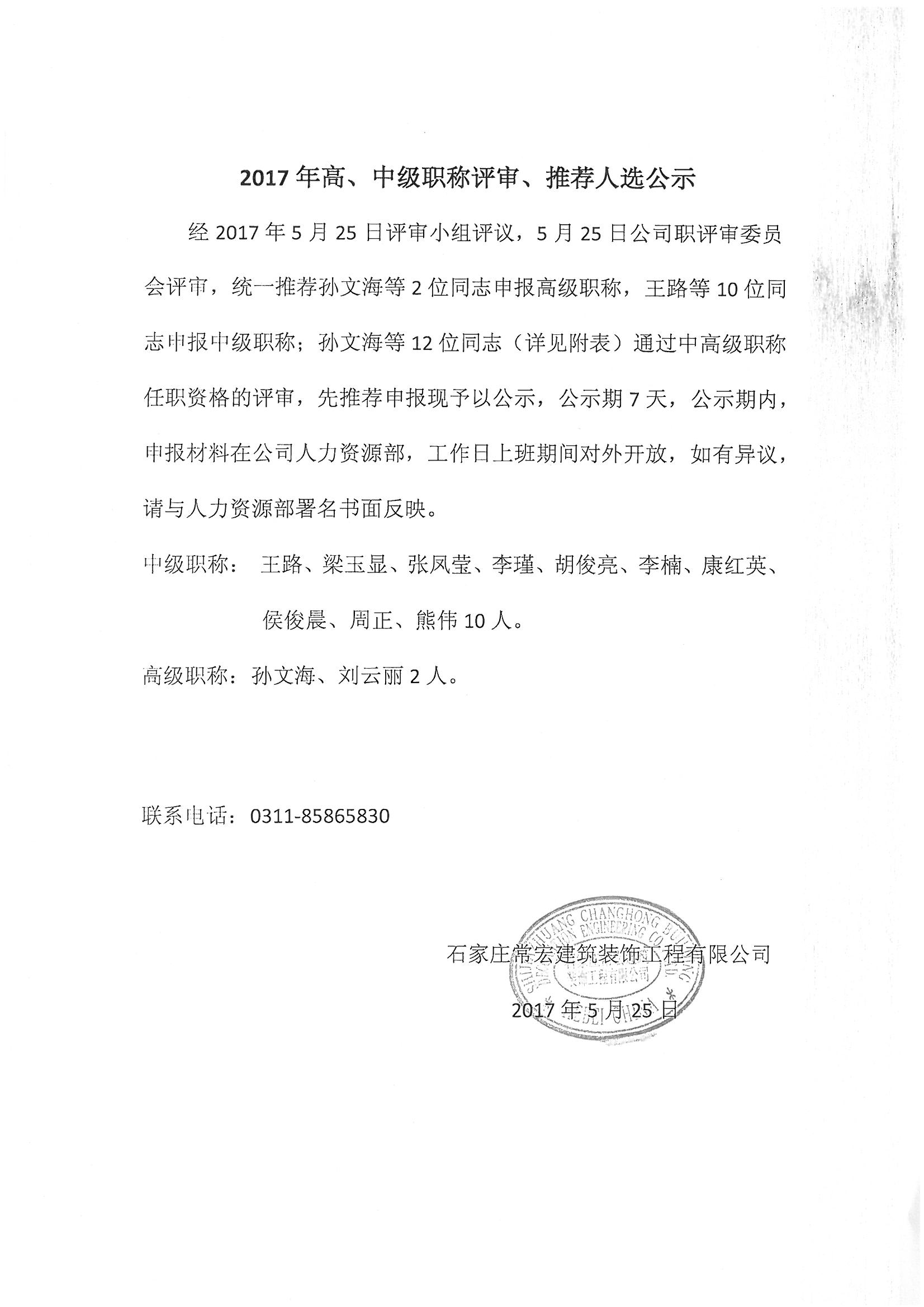 常宏裝飾高中級職稱公示文件