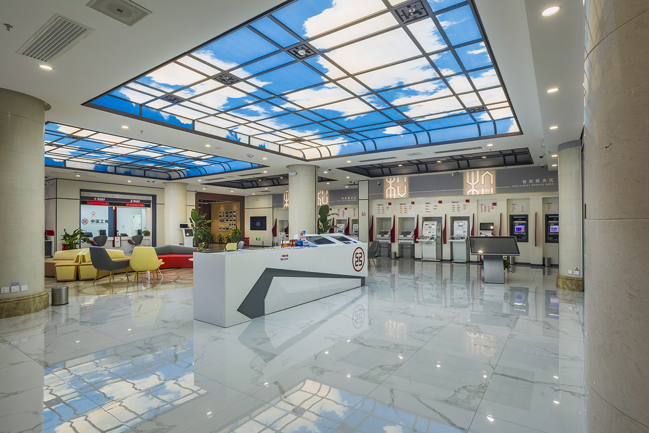 中國(guó)工商銀行和平支行坐落于石家莊CBD中心商務(wù)區(qū),是一個(gè)全新的智能化網(wǎng)點(diǎn)。該網(wǎng)點(diǎn)圍繞“智慧廳堂”建設(shè),室內(nèi)燈光、空調(diào)、照明等采用智能環(huán)控系統(tǒng),玻璃隔斷采用可智能調(diào)節(jié)通透度的霧化玻璃,打造出一個(gè)科技、智能、舒適的現(xiàn)代化銀行營(yíng)業(yè)場(chǎng)所。