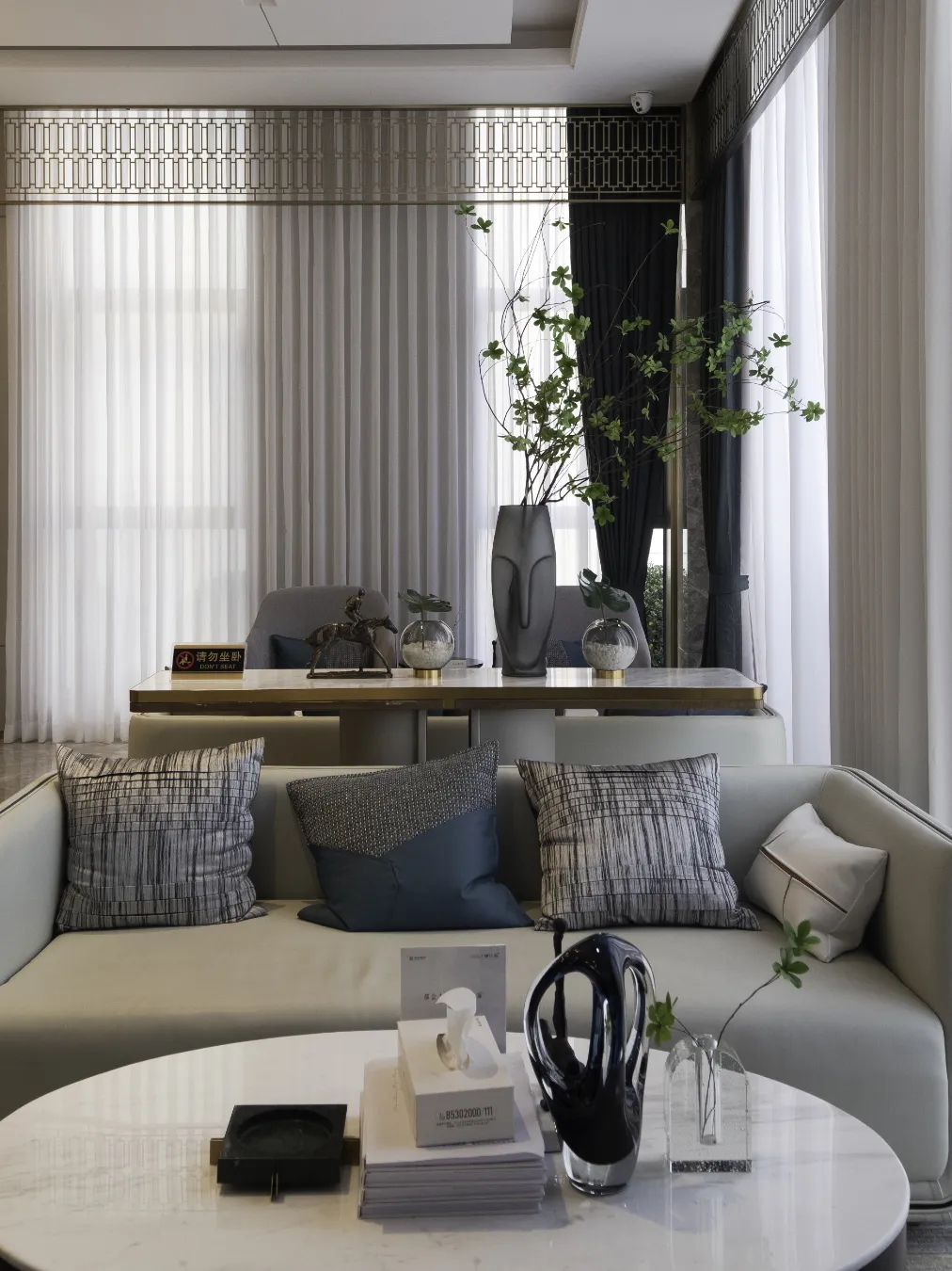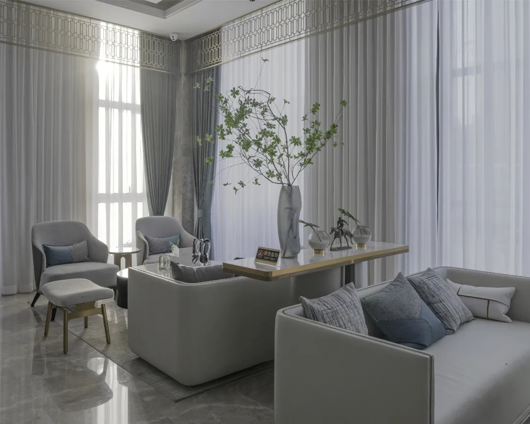 該項(xiàng)目設(shè)計(jì)為新中式現(xiàn)代風(fēng)格,將中式元素與現(xiàn)代材質(zhì)巧妙兼柔進(jìn)行布置,總體布局上對(duì)稱均衡,端正穩(wěn)健,在裝飾細(xì)節(jié)上富于變化,充分體現(xiàn)出中國傳統(tǒng)美學(xué)精神。整體空間簡潔大方,相得益彰。