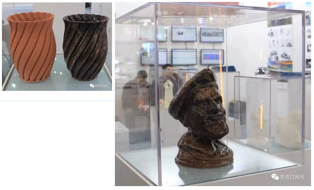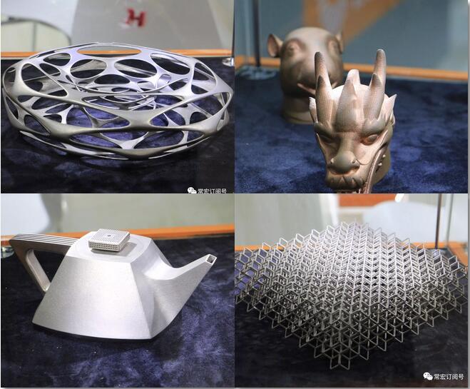 這次展會(huì)中,多家企業(yè)均展示了3D打印機(jī),3D打印是一種以數(shù)字模型文件為基礎(chǔ),運(yùn)用粉末狀金屬或塑料等可粘合材料,通過(guò)逐層打印的方式來(lái)構(gòu)造物體的技術(shù),是快速成型技術(shù)的一種。其中,杭州瑞德設(shè)計(jì)股份有限公司、山東風(fēng)谷信息科技股份有限公司、西安鉑力特增材技術(shù)股份有限公司三家企業(yè)分別展示了運(yùn)用塑料、陶瓷、金屬進(jìn)行打印的產(chǎn)品。打印出的成品質(zhì)量堅(jiān)固耐用,外觀造型獨(dú)特,具有很高的使用價(jià)值與藝術(shù)價(jià)值。