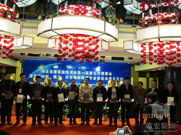 2013年4月10日,由河北省建筑裝飾學(xué)會主辦的河北省建筑裝飾學(xué)會第一屆第五次理事會暨裝飾材料、施工、住宅裝飾裝修專業(yè)委員會成立大會在唐山召開。會上,對榮獲2012年河北省建筑裝飾行業(yè)省優(yōu)工程、科技示范工程及成果企業(yè)、十強企業(yè)、優(yōu)秀企業(yè)家及優(yōu)秀女企業(yè)家、優(yōu)秀(杰出)項目經(jīng)理進行表彰。