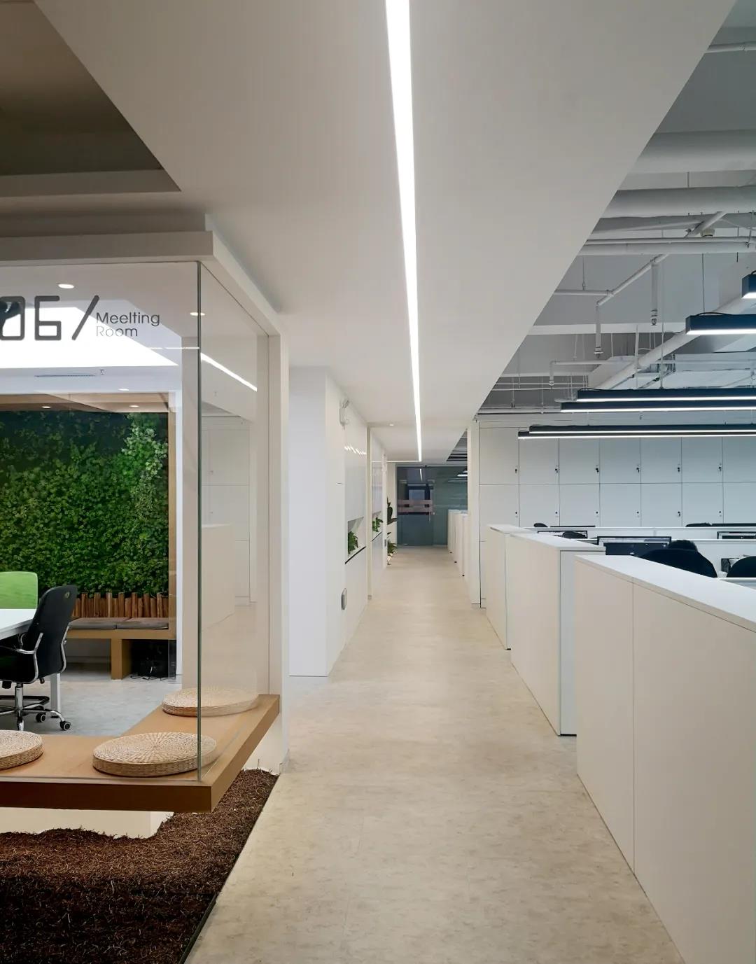 “一環(huán)” 作為空間主要的功能動(dòng)線,簡(jiǎn)潔明了,鏈接所有辦公板塊和領(lǐng)導(dǎo)辦公室,實(shí)現(xiàn)辦公效率的最大化。