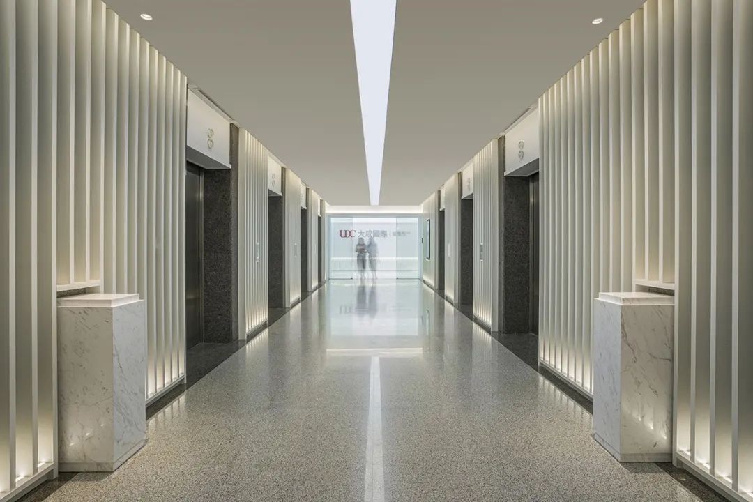 “一軸” 包含樓層電梯廳、企業(yè)門廳、展廳,強(qiáng)調(diào)對(duì)空間儀式感的營(yíng)造;