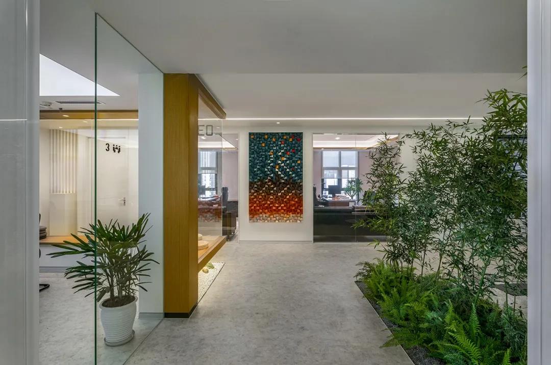 白色+天然木色+綠植構(gòu)成空間主要的材質(zhì)及色彩語(yǔ)言,營(yíng)造出細(xì)致、精巧的空間特質(zhì)。