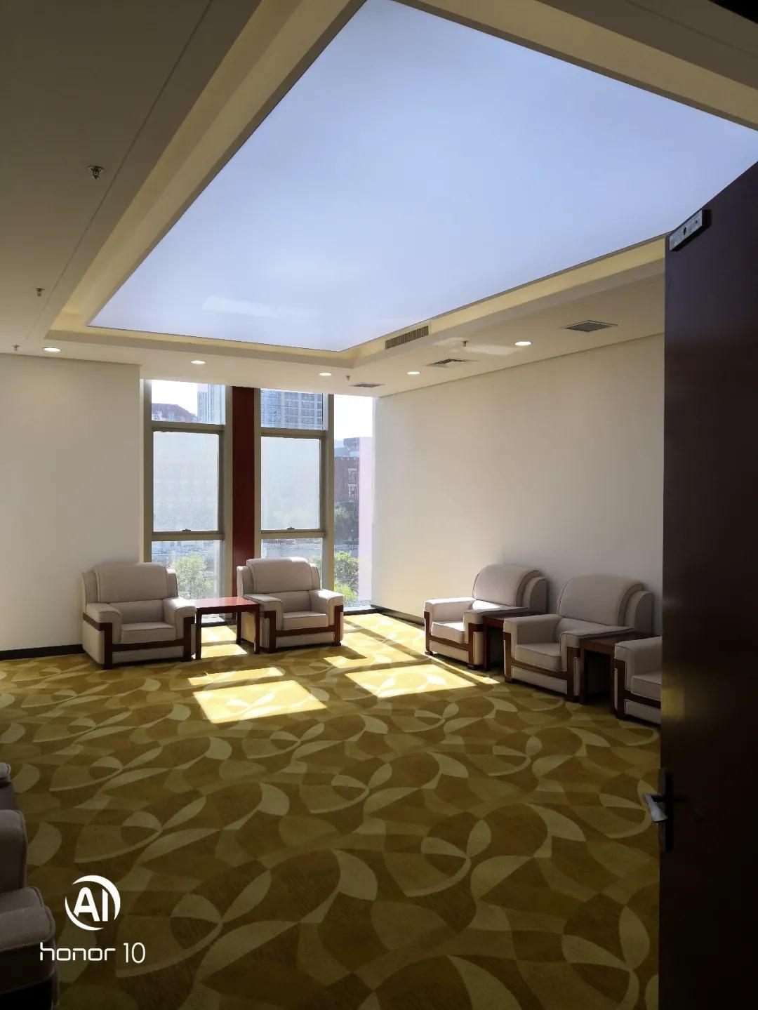 一層營業(yè)廳因吊頂面積較大,頂高較高,安裝過程中多次進(jìn)行加固調(diào)整,并增加轉(zhuǎn)換層。