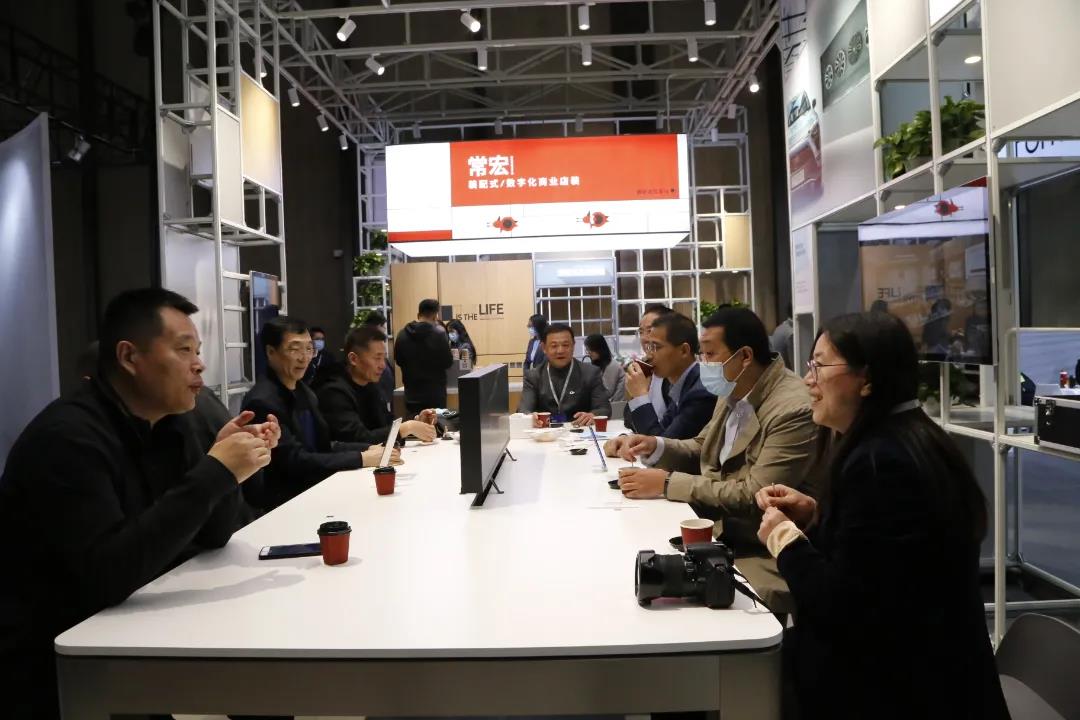 河北省風景園林學會副理事長兼規(guī)劃設計委員會主任鄭占峰先生、雄安城市規(guī)劃設計研究院總工程師夏雨女士、河北省工業(yè)設計協(xié)會秘書長于俊卯先生、河北省建筑科學研究院副院長邊智慧先生、孫錚室內(nèi)設計工作室設計總監(jiān)孫錚先生、蕉林・茶書屋創(chuàng)始人張迎軍先生、格藝晟景觀總經(jīng)理趙紅女士等一行到訪常宏展位。