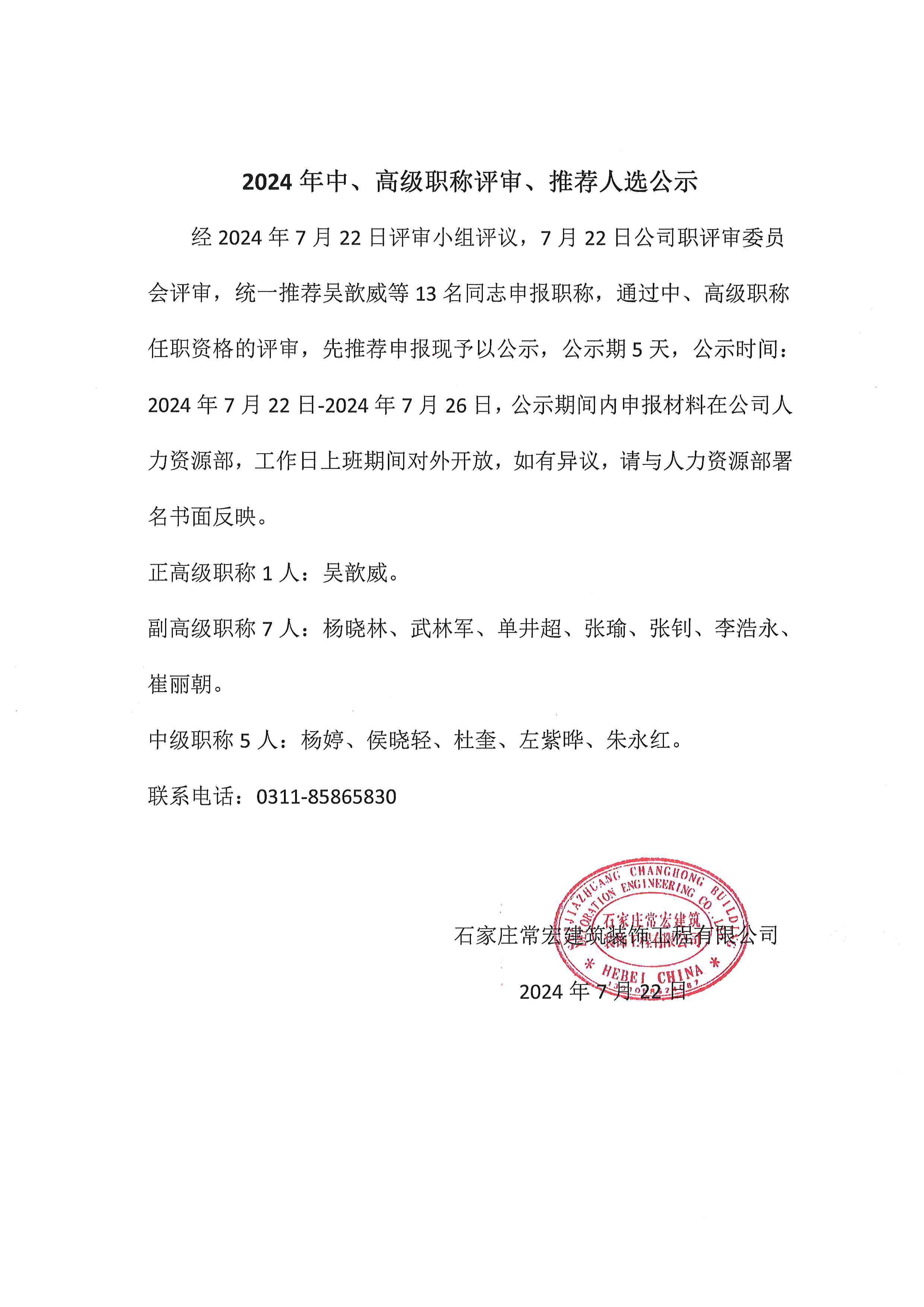 首頁> 關于我們> 公司新聞> 2024年中、高級職稱評審、推薦人選公示