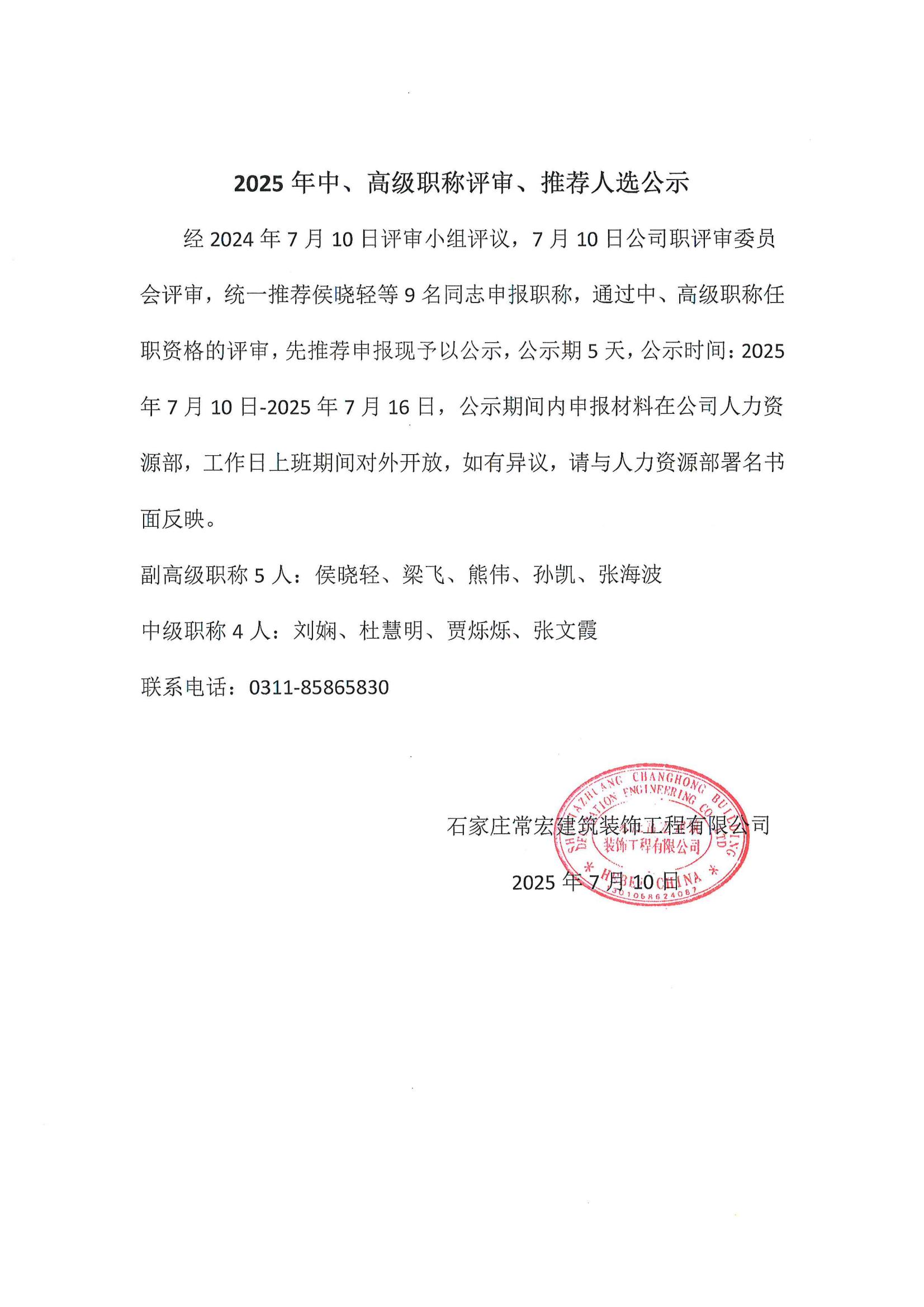 首頁> 關于我們> 公司新聞> 2025年中、高級職稱評審、推薦人選公示