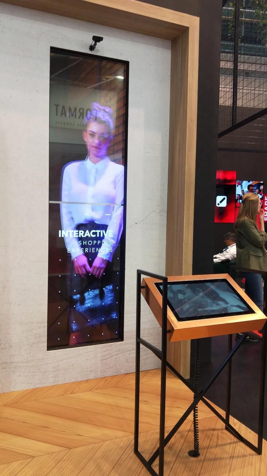 下面是荷蘭的一家公司整合的零售店智能產(chǎn)品,雖然在技術(shù)層面上不比國內(nèi)先進(jìn)多少,但是內(nèi)容設(shè)計(jì)上還是我們值得借鑒的。前面的一個屏幕供顧客選擇衣服并提供各種搭配,大屏幕上同時(shí)出現(xiàn)你做出的選擇和模特穿著你所選衣服的靚麗外表。當(dāng)您還在欣賞自己選擇的衣服是否合適時(shí),會出現(xiàn)一個跟模特一樣的真人。也許這就是西方特有的幽默吧。