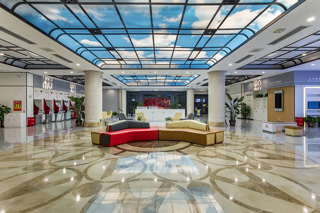 中國(guó)工商銀行和平支行坐落于石家莊CBD中心商務(wù)區(qū),是一個(gè)全新的智能化網(wǎng)點(diǎn)。該網(wǎng)點(diǎn)圍繞“智慧廳堂”建設(shè),室內(nèi)燈光、空調(diào)、照明等采用智能環(huán)控系統(tǒng),玻璃隔斷采用可智能調(diào)節(jié)通透度的霧化玻璃,打造出一個(gè)科技、智能、舒適的現(xiàn)代化銀行營(yíng)業(yè)場(chǎng)所。